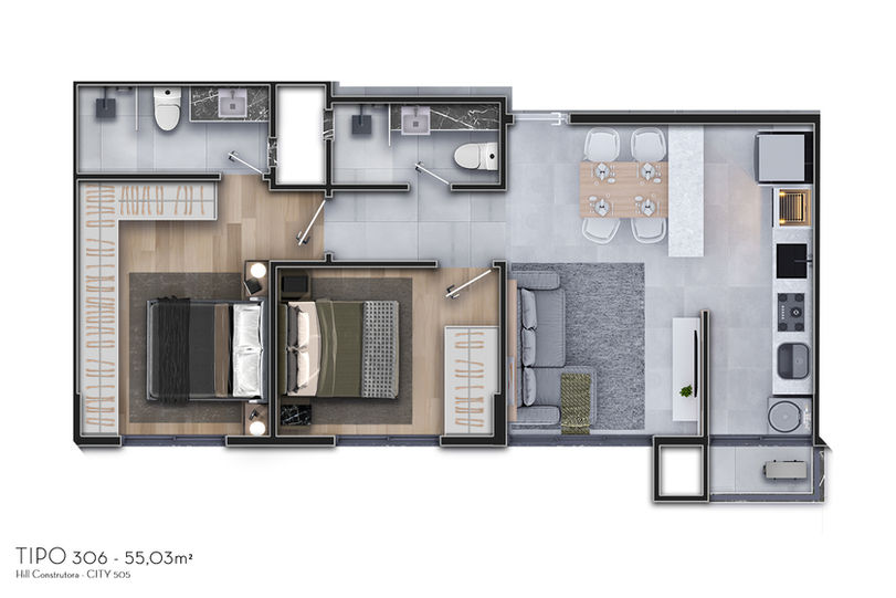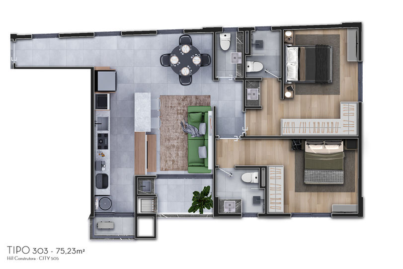 Imagens 3D com possibilidade de design de interiores, paisagismo e design externo.