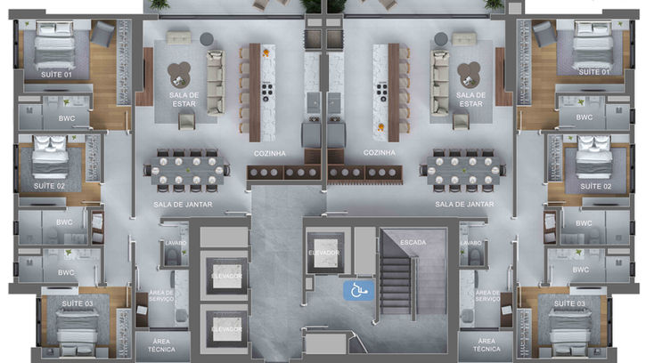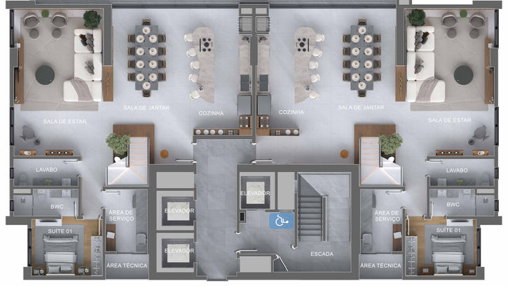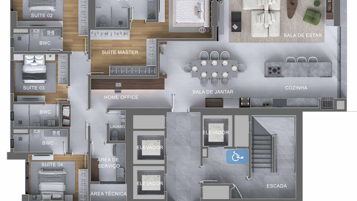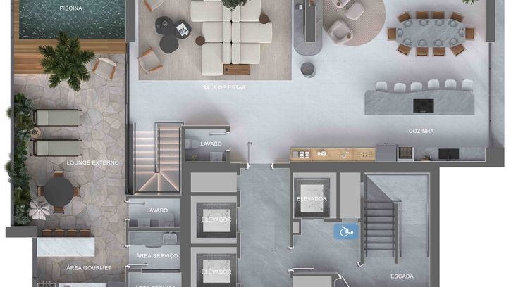 Imagens 3D com possibilidade de design de interiores, paisagismo e design externo.