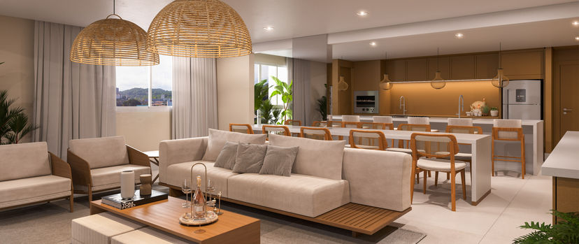 Imagens 3D com possibilidade de design de interiores, paisagismo e design externo.