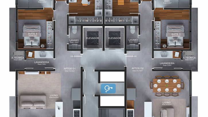 Imagens 3D com possibilidade de design de interiores, paisagismo e design externo.